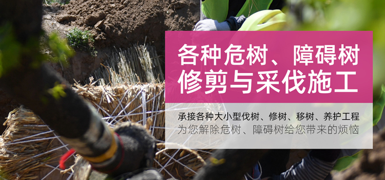 本公司具有高水平的施工隊伍、先進(jìn)的采伐工具,高超的高空作業(yè)技術(shù)、誠信的服務(wù),完善的管理。常年承接各種大小型伐樹、修樹、移樹、養(yǎng)護(hù)工程。常年為各大倉庫、部隊院校、工廠和小區(qū)物業(yè)進(jìn)行樹木的修剪及采伐施工,為您解除危樹、障礙樹給您帶來的煩惱,真誠尋求各單位綠化隊的合作與支持。